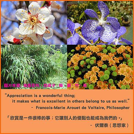 這一次所使用的嘉言圖片是四君子 - 梅、蘭、竹、菊。梅在寒冬盛放,蘭花清秀,菊花淡香、竹子節節高升,常被視為君子的象徵。